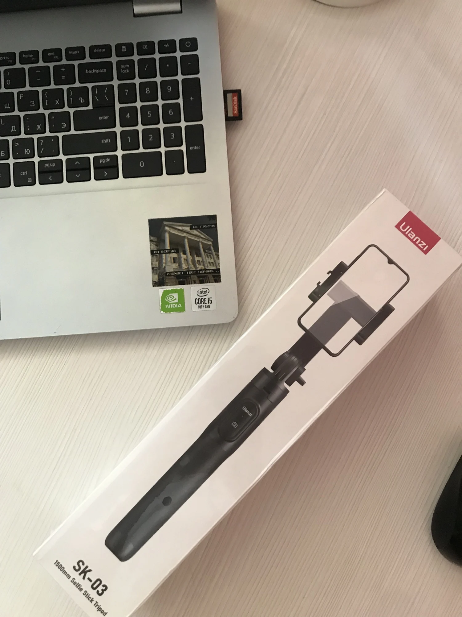 The tripod is great! Quality. I really liked it. Delivery 5 days to Belgorod. Multifunctional. Not very heavy, so you can take with you.